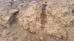 Figura 4. Método de surco para el muestreo de las menas lateríticas en las pilas de las plazoletas.