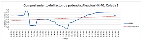 Figura 1. Comportamiento del factor de potencia para una aleación de acero HK-40.