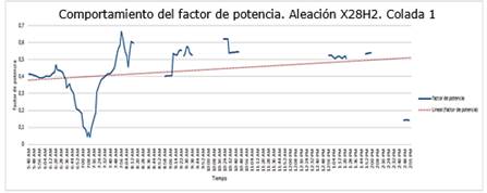 Figura 2. Gráfica comportamiento del factor de potencia para una aleación X28H2.