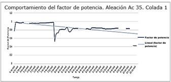 Figura 3. Gráfica del comportamiento del factor de potencia para una aleación de Ac 35.